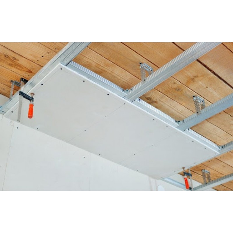 Потолочный гипсокартон Knauf используется для невысоких помещений, на даче, в офисах. Также он подходит для устройства многоуровневых потолков. Листы гипсокартона монтируйте на нужной высоте при помощи профильной системы и комплектующих.