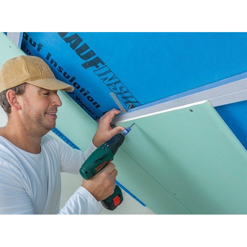 Влагостойкий гипсокартон применяется в местах с повышенной влажностью: ванная комната, помещения с бассейном. Влагостойкие листы (ГКЛВ) благодаря особым гидрофобным добавкам обладают пониженной абсорбцией влаги. Масса одного листа около 30 кг.