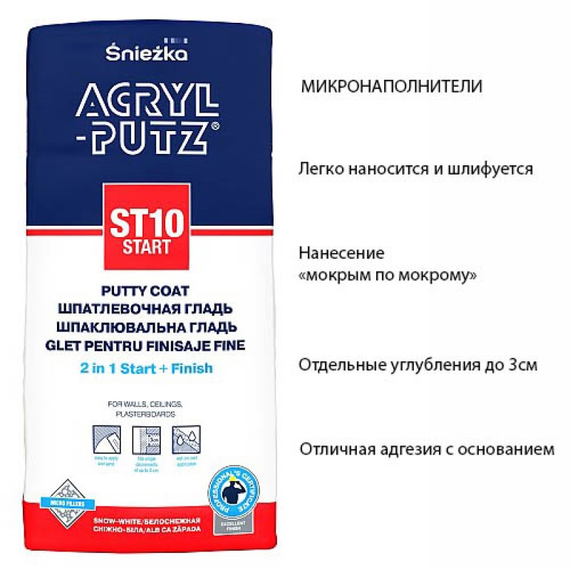 Теги: ACRYL-PUTZ ST10. Старт-финиш. Польша. 20 кг., 127, Sniezka, Шпатлёвка